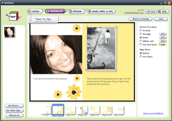 Smilebox te ofrece una forma muy fácil de crear felicitaciones, collages, álbumes de fotos y otros diseños divertidos. Elige con Smilebox lo que deseas hacer, incluye tus fotografías, vídeos y canciones y consigue resultados originales sin tener que aprender a manejar programas de diseño.